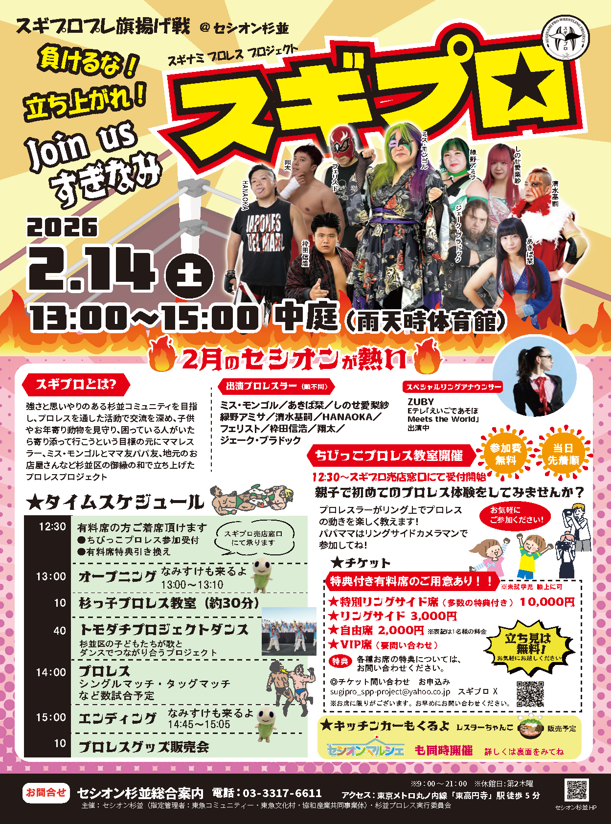 親子で初めてのプロレス体験をしてみませんか?12:30〜スギプロ売店窓口にて受付開始