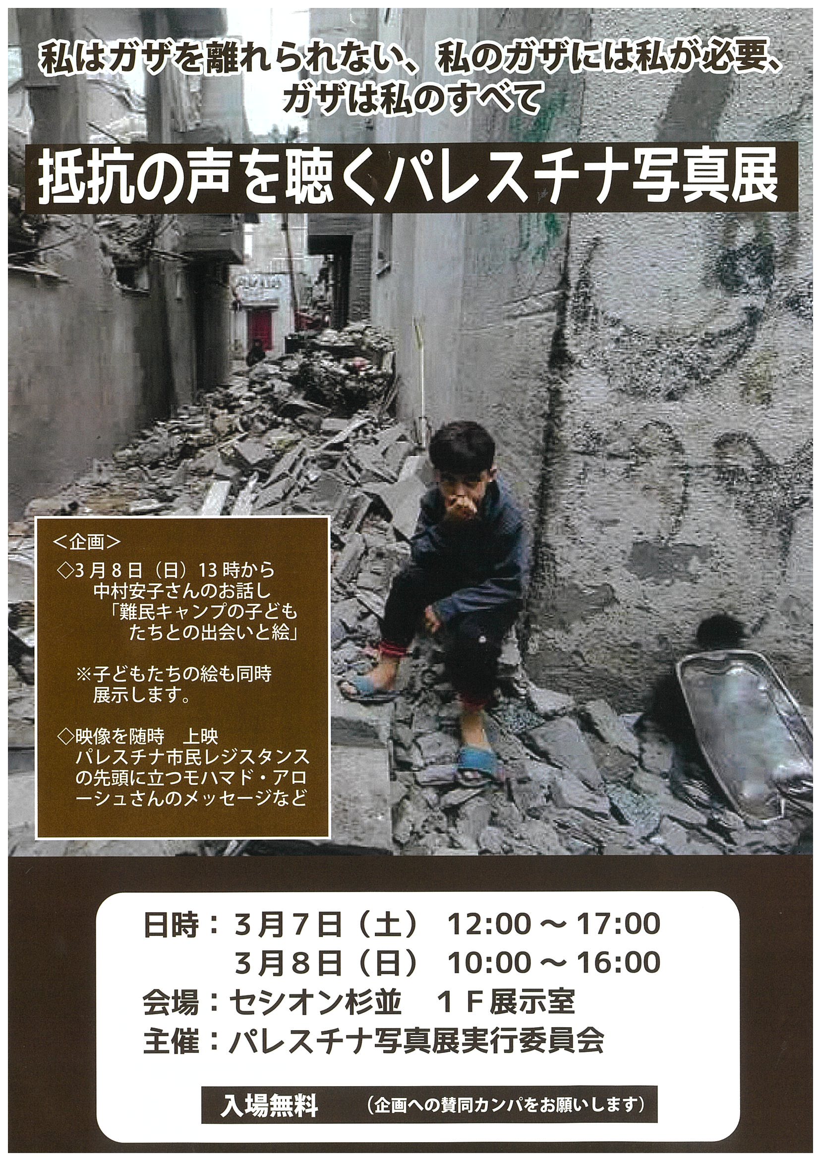 | お問い合わせ | パレスチナ写真展実行委員会 Email:ktanaka5511@yahoo.co.jp |