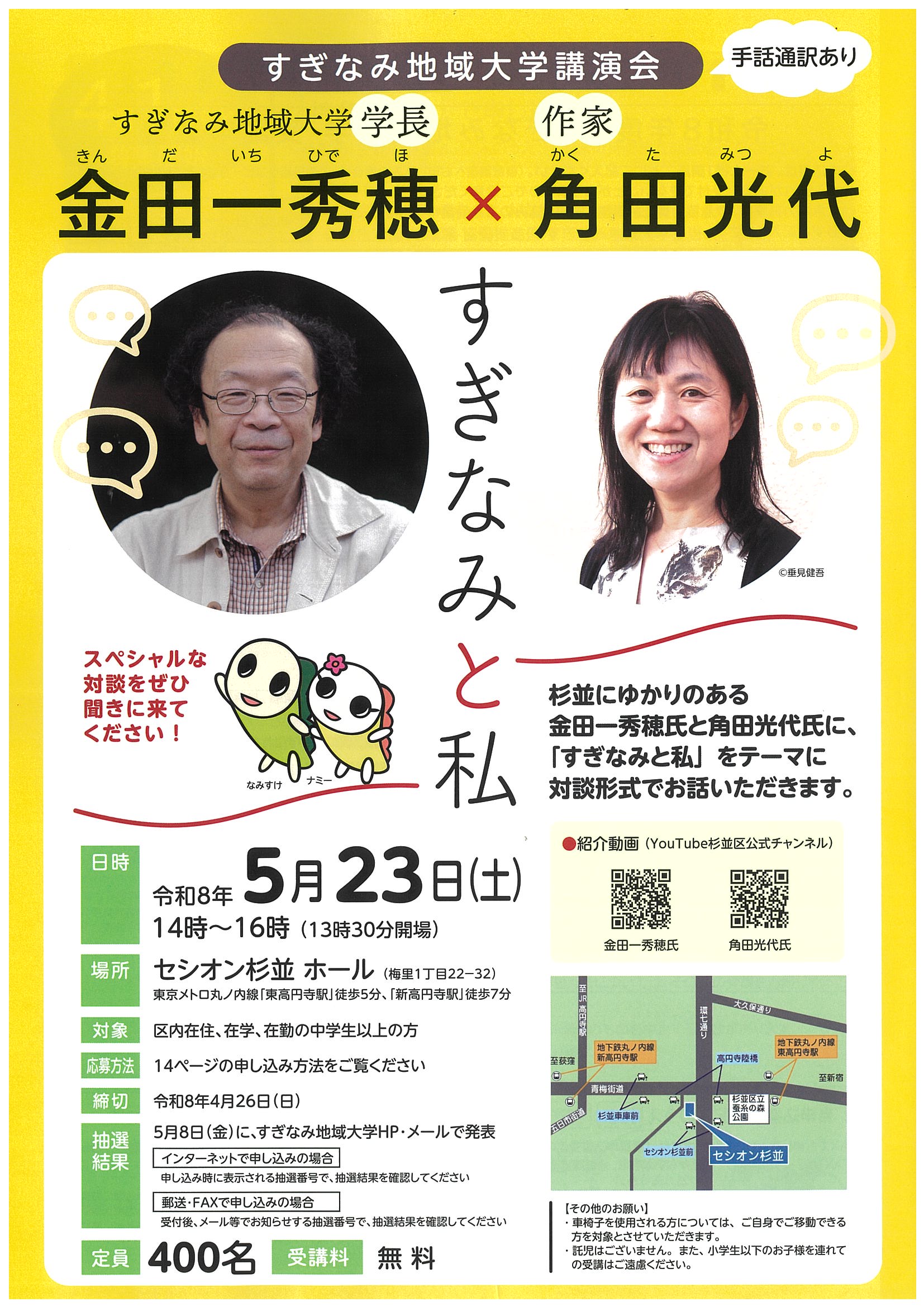 杉並にゆかりのある金田一秀穂氏と角田光代氏に、