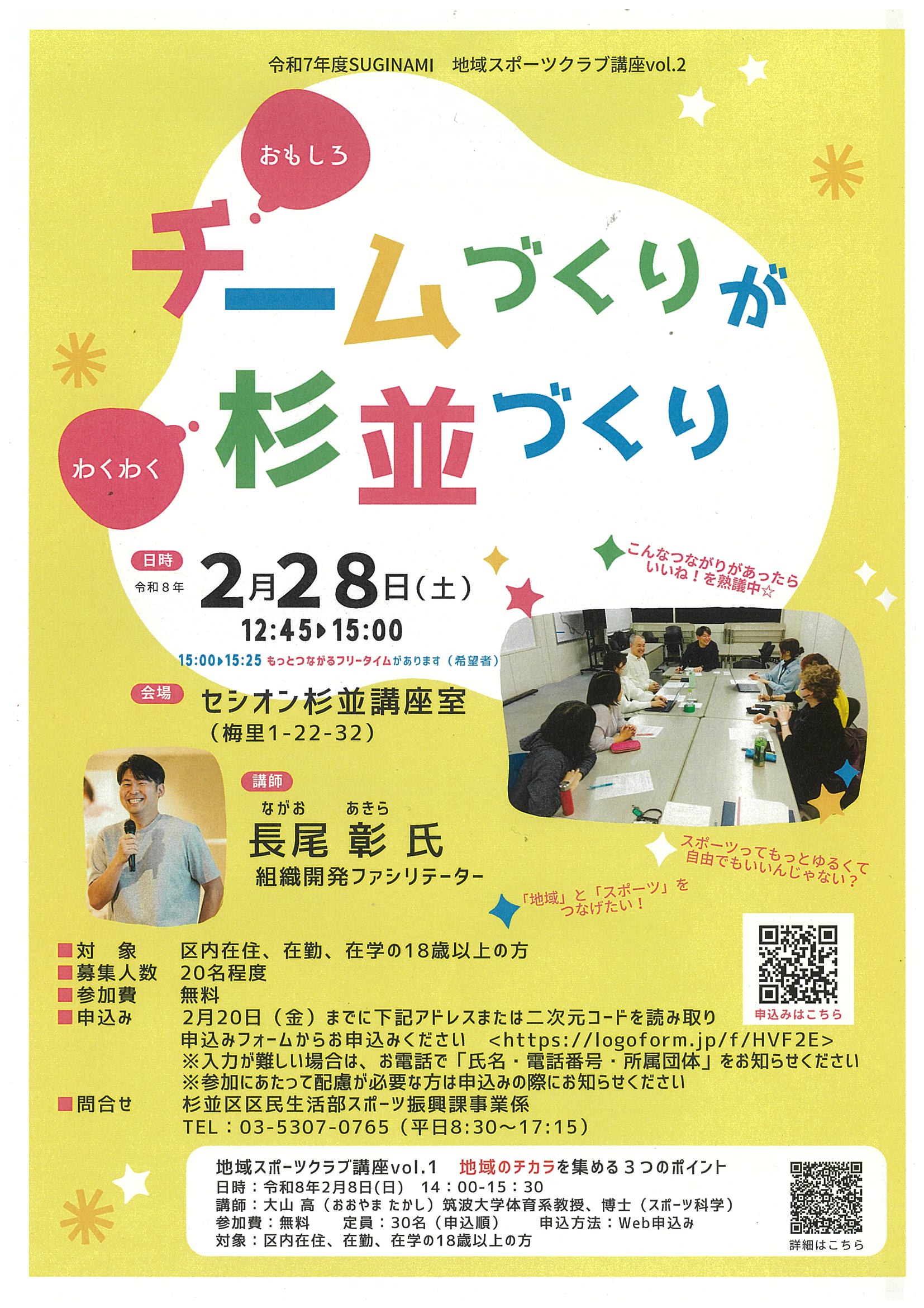 杉並区スポーツ振興財団ご予約サイト:https://sports-suginami.resv.jp/ 申込締め切り:2月20日 |