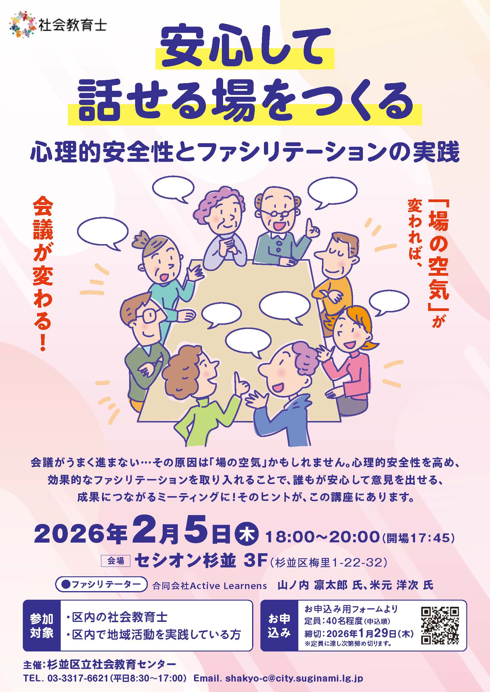 | お問い合わせ | 杉並区立社会教育センター 電話:03-3317-6621 平日8:30~17:00 |