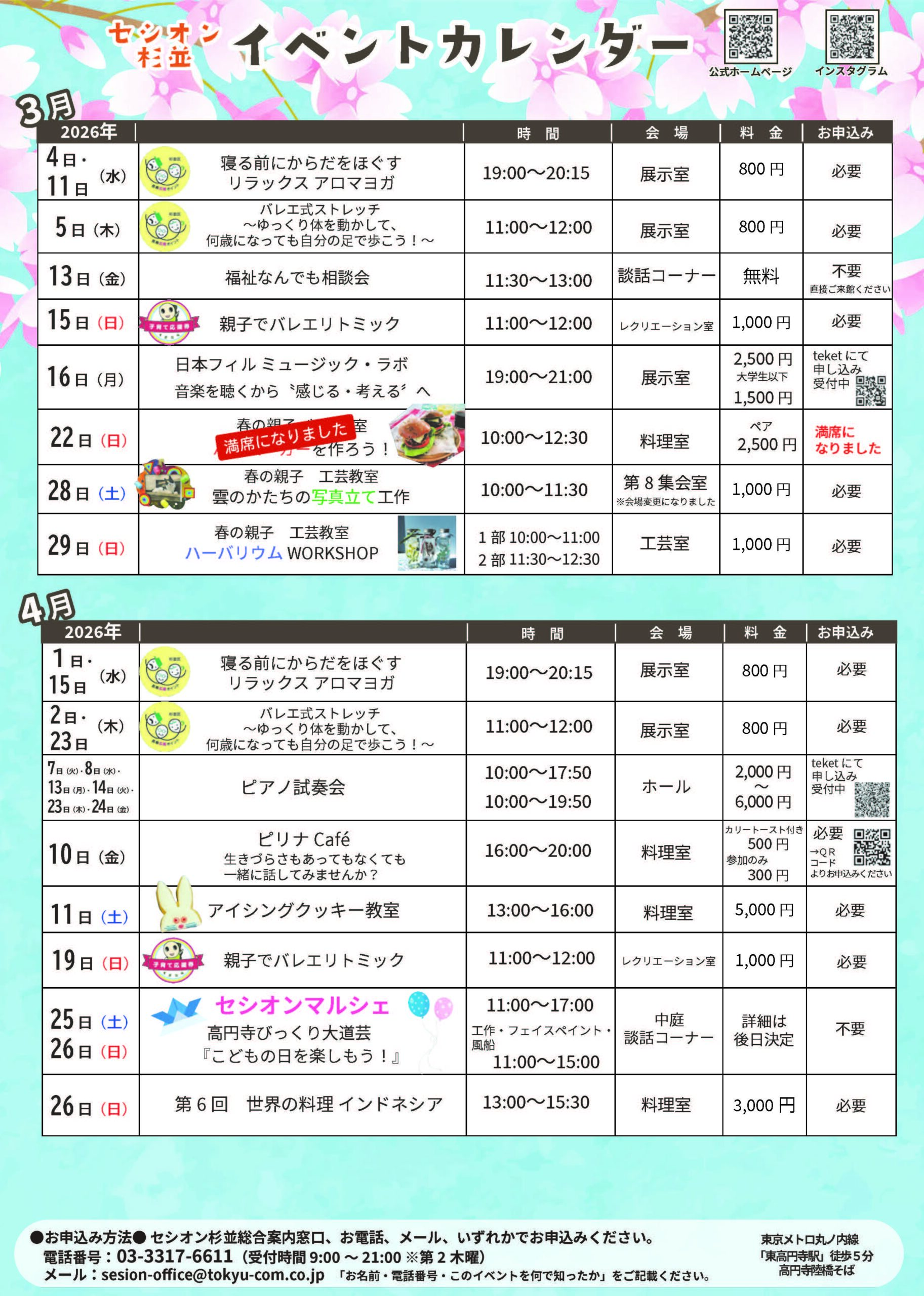セシオン杉並の3月・4月のイベントカレンダーです。