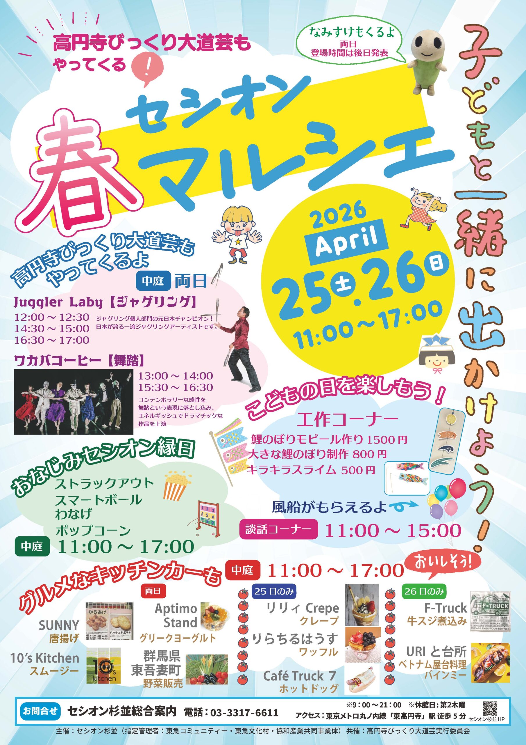 工作コーナー、グルメなキッチンカー、なみすけ登場、など内容盛りだくさん!